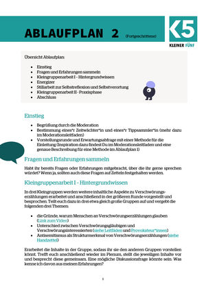 Mit unseren Materialien zum radikal höflichen Umgang mit Verschwörungserzählungen könnt ihr eigenständig einen Workshop zusammenstellen oder ihr nutzt unsere beiden beispielhaften Ablaufpläne. Ablaufplan 1 ist für den Einstieg geeignet, hier wird euch detailliert vorgeschlagen, wie ihr eine 90-minütige Gesprächsrunde gestalten könnt; inklusive Zeiteinteilung und Gesprächsmethoden. Ablaufplan 2 ist als Vertiefung geeignet und gibt euch etwas mehr Freiraum in der Ausgestaltung des Workshops.